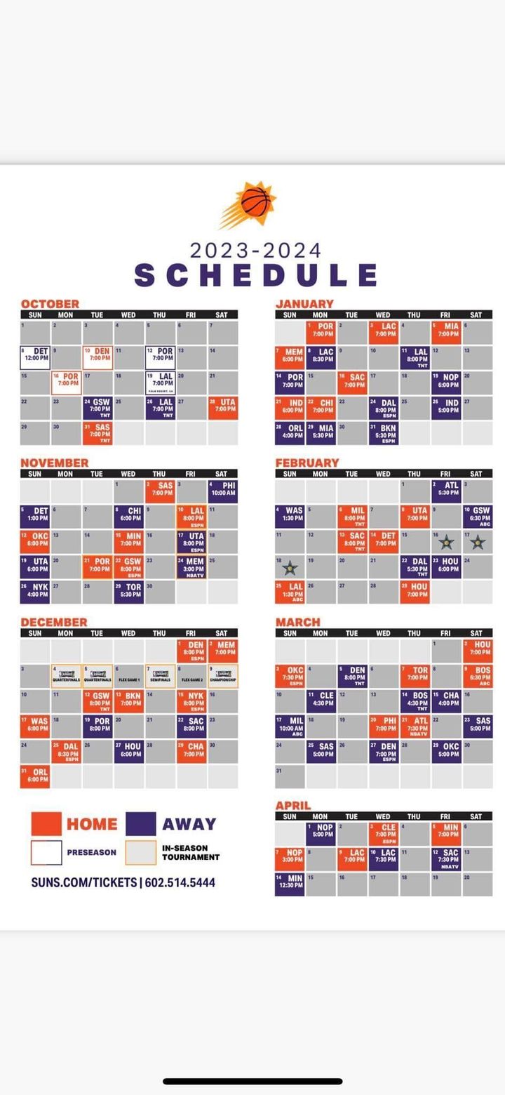 Suns 2023 24 regular season schedule : r/suns