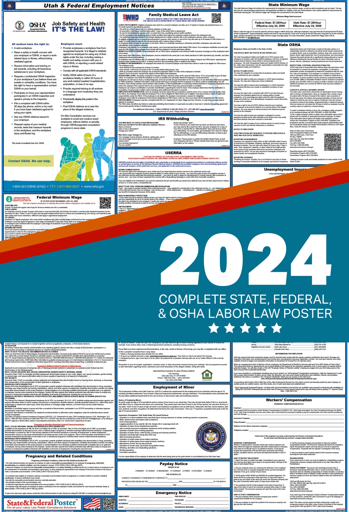 PREORDER Utah State and Federal Labor Law Poster 2024 — State